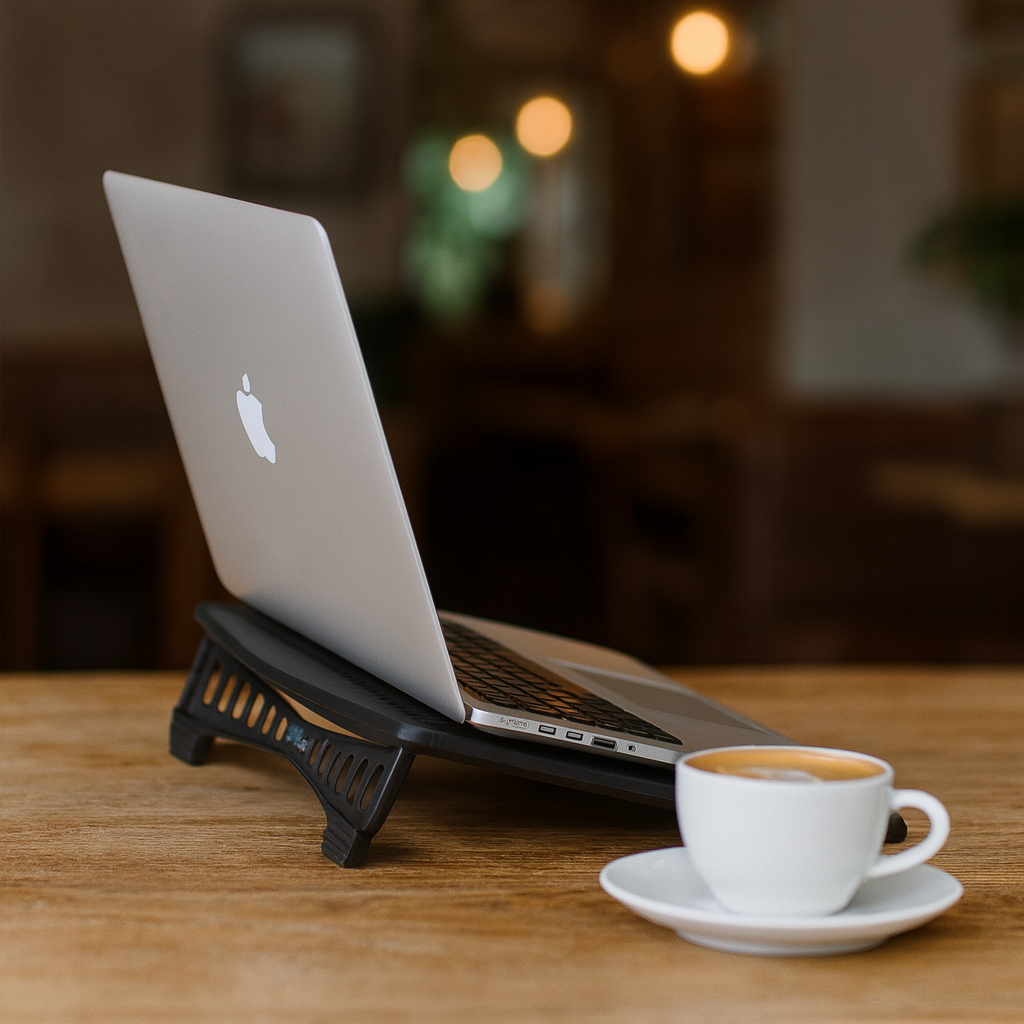 • הפחתת קרינה: המעמד יוצר מרווח בינך לבין המחשב ומפחית חשיפה לקרינה בעת עבודה על הברכיים.